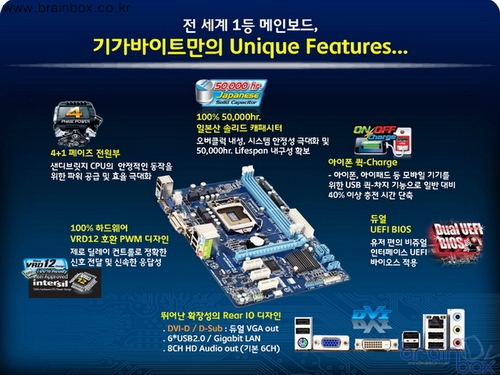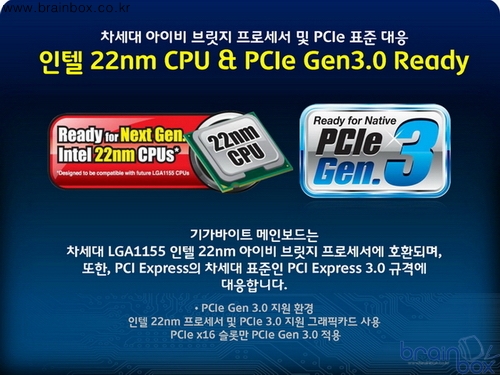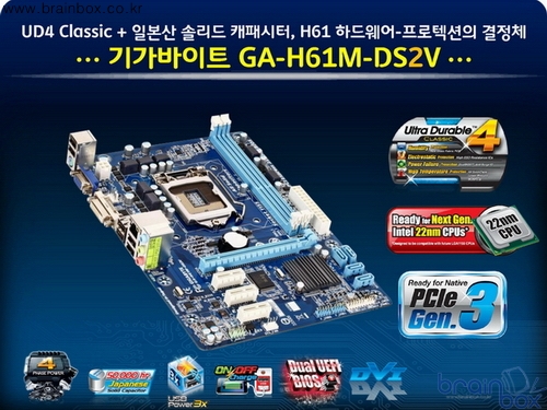 추가적으로, GA-H61M-DS2V 메인보드는 인텔 차세대 22nm CPU 아이비 브릿지 프로세서 및 PCIe GEN 3.0등 2012년 새롭게 선보일 차세대 신기술에도 대응하여, 가격과 성능은 물론 최신 사양의 PC를 구입하려는 소비자에게는 물론 추후 업그레이드시에도 큰 메리트를 제공한다.