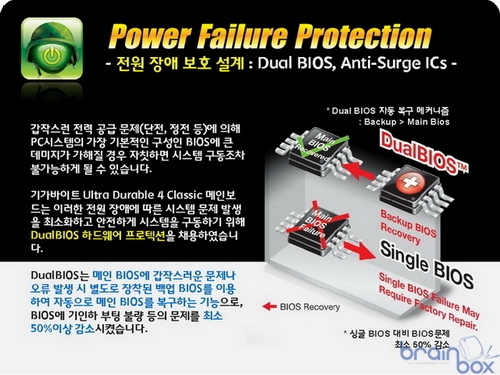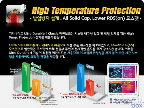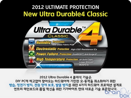 또한, GA-H61M-DS2V 메인보드는 DIY PC에서 빈번히 발생할 수 있는 하드웨어에 기인한 오-동작을 최소화하기 위한 방습, 정전기 방지, 전원장애 보호, 발열 방지를 위한 4가지 하드웨어 프로텍션 설계로 엔트리 메인보드의 품질 혁신을 위한 얼티밋 프로텍션 Ultra Durable4 Classic 설계가 적용된 것이 특징이며, 100% 일본산 50,000Hr 솔리드 캐패시터의 채용으로 내구성과 안정성을 확보 하였다. 또한 기가바이트 메인보드 만의 USB 회로 설계로 최대 3배의 안정적인 USB 전원 공급 기술인 3X USB 파워부스트 설계가 적용되어 USB 장치 사용시 안정적인 장치 동작 가능은 물론 다수의 USB 장치 사용시 전원 공급 안정성을 배가하였다.