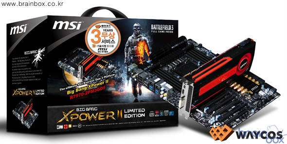 MSI R7970-2PMD3GD5 그래픽카드는, 현존 최고의 3D 가속성능을 제공하는 고성능 VGA 제품이다. 세계 최초로 28nm 제조공정이 적용된 라데온 HD 7970 GPU가 장착되어 있으며, 익스트림 그래픽 성능을 위한 3GB 초고속 DDR5 메모리를 장착하고 있다. 아울러 라데온 HD 7970 그래픽카드로서는 세계 최초로 GPU 전압오버 기능을 지원하여 더욱 높은 성능에 도전할 수 있으며, AMD 아이피니티 기술을 통해 최대 6개 모니터까지 지원이 가능하다. MSI 빅뱅 XPOWER 2 리미티드 에디션은 시스템을 구성한 후 강력한 성능을 소비자가 직접 체감할 수 있도록, 현재 최고의 인기를 누리고 있는 “배틀필트3 정품 다운로드 쿠폰”이 기본 제공된다. ※ MSI 빅뱅 XPOWER 2 익스트림 에디션 정보 : http://blog.danawa.com/prod/1599312 MSI 공식 한국 디스트리뷰터인 ㈜웨이코스가 국내에 유통하는 MSI 메인보드 및 그래픽카드는 3년 무상 A/S를 제공하며, 제품에 대한 더욱 자세한 내용은 웨이코스 홈페이지 (http://www.waycos.co.kr / 02-712-8999)을 참조하면 된다.