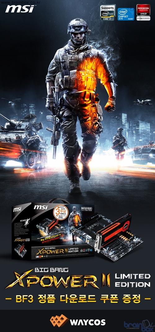 MSI 빅뱅 XPOWER 2 리미티드 에디션은 최고의 성능과 최상의 퀄리티를 원하는 소비자 계층을 위하여 특별한 구성된 패키지다. 현존 최고 성능의 인텔 코어 i7 프로세서를 장착할 수 있는 “MSI 빅뱅 XPOWER 2” 메인보드와, 세계 최초 28nm 제조 공정으로 단일 코어 그래픽카드 제품으로서는 가장 빠른 성능을 제공하는 “MSI R7970-2PMD3GD5” 그래픽카드가 함께 제공되는 패키지다. MSI 빅뱅 XPOWER 2 메인보드는, MSI의 최신 기술이 적용되어 있는 익스트림 메인보드 제품이다. 익스트림 오버클럭을 위해 CPU 및 메인보드 전체에 충분한 전력이 공급될 수 있도록 22페이즈 DrMOS 2 디지털 전원부를 제공하고 있으며, 익스트림 그래픽 성능을 위해 4웨이 SLI / CrossFireX 구성 환경을 지원한다. 아울러 8개의 쿼드채널 메모리 소켓을 통해 최대 128GB 까지 메모리를 확장할 수 있으며, CPU 전원부에는 탄탈륨 코어를 기반으로 한 고품질 Hi-C 캐패시터가 사용되었다.