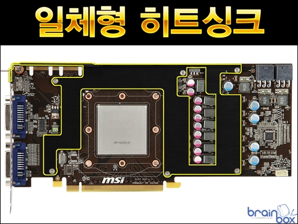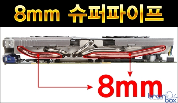 MSI 트윈 프로져 3 쿨링 시스템은 GPU 와 닿는 히트싱크 파트를 열 전도율이 높은 구리 기반으로 제작하였으며, 장시간 사용시에도 부식이 되지 않도록 니켈 도금 코팅 역시 기본적으로 적용하였다. 아울러 GPU의 발열량을 신속하게 히트싱크로 전달하기 위하여 5개의 히트파이프를 장착하고 있으며, 5개의 히트파이프 중 2개는 업계 최대 사이즈인 “8mm 슈퍼파이프” 로 구성하여 더욱 빠르고 신속하게 GPU 발열량을 제거할 수 있다.