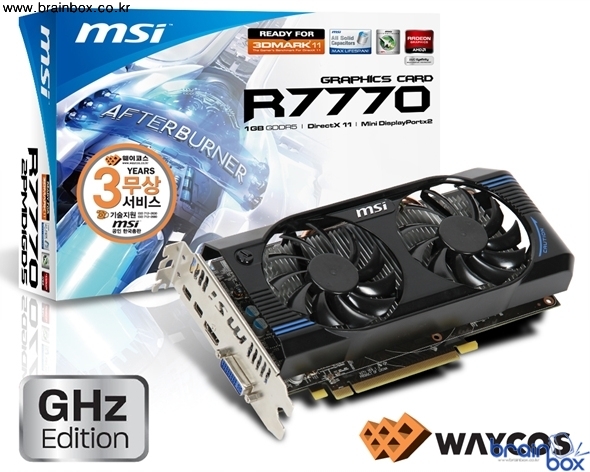 세계 최고의 VGA 제조 기술력을 갖춘, MSI의 한국 공식 디스트리뷰터인 ㈜웨이코스(대표:고민종)가 AMD 최신 그래픽 코어 기반의 RADEON HD 7770 GPU를 장착한 “MSI R7770 아머 2X/OC” 그래픽카드를 출시했다. MSI R7770 아머 2X/OC 그래픽카드는 세계최초 28nm 미세공정 기반으로 640 Unit 스트림 프로세서의 Cape Verde 코어를 탑재하고 1020MHz GPU와 4500MHz로 동작하는 차세대 GDDR5 1GB 메모리를 제공한다. 강력한 아머 2X 듀얼 쿨링 시스템