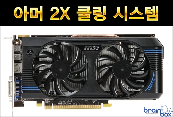 MSI R7770 아머 2X/OC 그래픽카드는 일반 레퍼런스 싱글 팬 제품보다 더욱 강화된 냉각 성능을 제공하는 강력한 “아머 2X” 듀얼 쿨링 시스템을 장착한 제품이다. GPU 발열량을 신속하고 효과적으로 제거하기 위해 2개의 구리 히트파이프가 GPU 에 직접 접착되는 디자인을 채택하였으며, 8cm 대형 팬을 장착하여 더 많은 풍량을 히트싱크와 기판에 직접 전달하여 8℃ 낮은 냉각 성능과 8.5dB 더 조용한 특성을 제공한다. 최신 PCI Express GEN 3 표준 지원