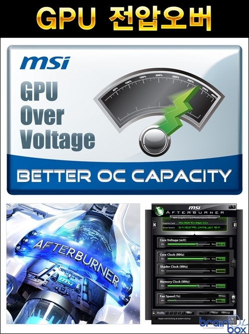 MSI R7770 아머 2X/OC 그래픽카드는 MSI Afterburner 유틸리티를 활용하여 레퍼런스 제품 성능에 만족하지 못하는 사용자들이나 처음 오버클럭을 시도하는 사용자에게 편리한 기능성을 제공한다. MSI Afterburner 유틸리티를 통해 사용자는 GPU 클럭 / 메모리 클럭 / 팬 스피드 등을 자유롭게 조절 가능하며, GPU 전압 조정 기능을 통해 오버클럭 성능을 향상시키는 특성을 제공한다. 아울러 애프터버너 최신 버전에서는 자신이 플레이하는 게임 화면을 실시간으로 동영상 캡쳐할 수 있는 “프레데터” 기능이 추가되어 더욱 다양한 방식으로 활용할 수 있는 특성을 제공한다. 고품질 All 솔리드 캐패시터 ? 안정적인 부품과 우수한 내구성 제공