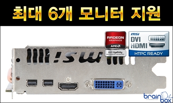 MSI R7770 아머 2X/OC 그래픽카드는 고품질 All 솔리드 캐패시터를 채택하여 더욱 안전하고 단단한 품질을 제공한다. 우수한 안정성과 내구성을 제공하기 위해 알루미늄 코어로 구성된 고품질 솔리드 캐패시터를 채택하여 풀로드 상태를 기준으로 10년이라는 긴 수명을 제공하며, ESR 특성 부분에서도 기존 솔리드 캐패시터보다 30% 낮은 특성을 제공한다. AMD 아이피니티 기술 지원 ? 최대 6대 모니터 연결 ? MSI R7770 아머 2X/OC 그래픽카드는 멀티 디스플레이 출력을 지원하는 AMD 아이피니티 기술을 제공한다. 그래픽카드의 영상 출력 포트를 통해 4대 모니터 연결이 가능하며 2 DisplayPorts에 멀티 스트림 트랜스포트 허브(MST HUB)를 통해 최대 6대 모니터를 연결 할 수 있다. ※ MSI R7770 아머 2X/OC? 공식 스펙