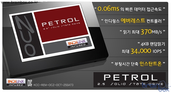 이번에 출시되는 PETROL은 SATA3 (6.0Gbps)인터페이스를 사용하여 최대 370MB/s (60GB : 185MB/s)의 읽기속도와 0.06ms의 데이터 접근 속도를 자랑한다. 최근에 출시된 SATA3 인터페이스 방식의 SSD에 비해 성능이 다소 낮지만, 하드디스크에 비해 월등한 속도 향상을 제공하므로 시스템을 업그레이드하기에 충분한 성능과 가격이 저렴한 것이 특징. SATA2와 SATA3의 체감 성능차이가 작다는 것을 감안할 때 충분히 경쟁력 있는 제품이 될 것이라고 관계자는 전했다.