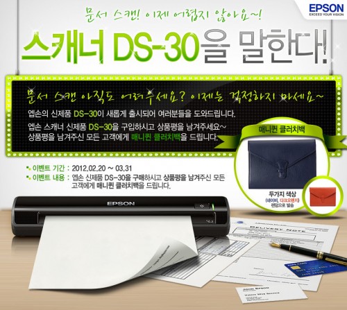 한편, 이번 신제품 출시 기념으로 제품 구매 고객을 위한 경품이 이벤트를 진행한다. DS-30을 구입하고 엡손 행사 사이트에 상품평을 남긴 모든 고객에게 매니퀸 클러치백(8만8000원상당)’을 제공한다.