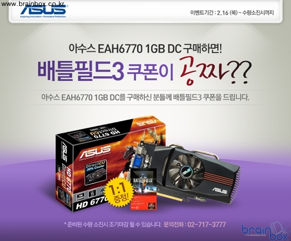 이번 행사는 오픈 마켓 우수 협력 점인 바이인(BUYIN)과 함께 진행되며 11번가,G마켓, 옥션등 주요 오픈마켓에서 바이인이 판매하는 EAH6770 DC 1GB 그래픽카드를 구매하게 되면 한정수량 선착순으로 배틀필드3 정품 다운로드 쿠폰을 증정하는 이벤트이다.??