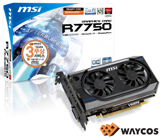 MSI의 국내 유통사 웨이코스는 AMD RADEON HD7750 칩셋이 탑재된 그래픽카드 'MSI R7750 아머 2X/OC&