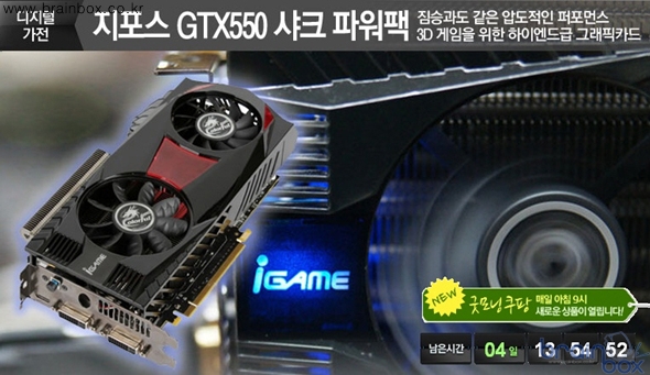 쿠팡에서 자사 제품 GTX550TI iGAME D5 1GB 제품의 할인 판매를 실시한다.