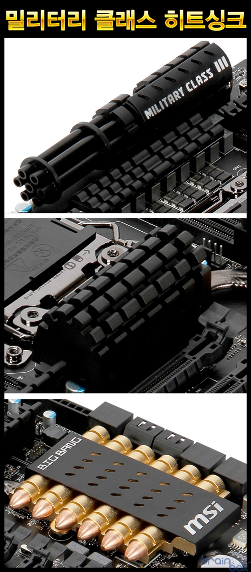 MSI 빅뱅-XPower 2메인보드는 시원한 전원부 쿨링을 위한 고품질 히트싱크 및 히트파이프도 기본 제공한다. MSI 빅뱅-XPower 2 제품에 장착된 히트싱크는 MSI 고유의 밀리터리 클래스 디자인을 형상화 한 특별한 디자인으로 주목을 받고 있으며, 오버클러킹을 위한 강력한 무기라는 컨셉으로 게틀링 건 바디 디자인과 탄환 디자인을 접목하여 기존 제품과는 차별화된 메인보드 디자인을 보여준다. 듀얼 8핀 + 6핀 커넥터, 익스트림 OC를 위한 강력한 전력 공급