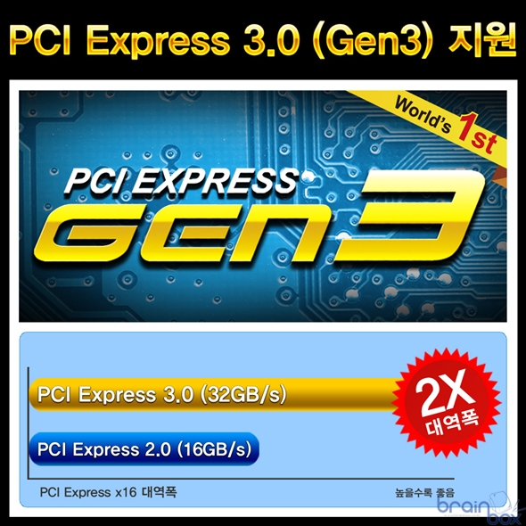 아울러 극한의 LN2 액체질소 오버클러킹 환경을 위한 3번째 바이오스를 제공하여, 기존 바이오스는 그대로 두고 별도로 극한의 오버클러킹을 시도해 볼 수 있도록 든든하게 지원하고 있다. (보드상의 멀티 바이오스 버튼을 누르면 Extra 3rd 바이오스로 부팅) 차세대 PCI Express 3.0 (Gen3) 공식 지원