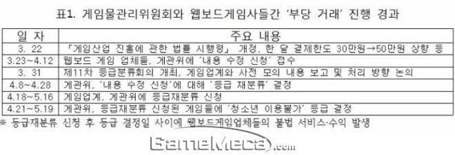 ▲ 게임위와 웹보드게임사 간 부당 거래 진행 경과 (자료제공: 유은혜 의원실)