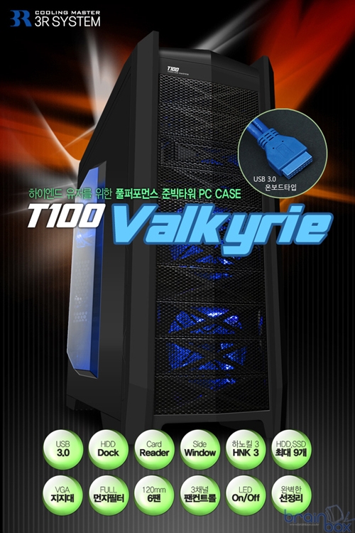 PC 케이스 & 파워서플라이 및 쿨링시스템 전문 제조기업 (주)쓰리알시스템(3R SYSTEM, www.3rsys.com 대표:류정무)에서 출시한 하이엔드 유저를 위한 풀퍼포먼스 준빅타워 T100 발키리의 USB 3.0 연결 타입이 기존 후면 연장선 방식에서 온보드 타입으로 변경된다고 전했다. T100 발키리는 하이엔드 유저를 위해 심플하고 기능성을 갖춘 타공망형 디자인과 사용자를 위한 다양한 옵션을 제공하는 고급형 케이스며, 그동안 중급형 미들타워 케이스에서 느끼지 못한 완성도를 느낄 수 있는 빅타워에 준하는 미들타워 케이스다. 동급에서 비교할수 없는 강력한 기능성과 심플하고 각이 살아 있는 디자인, 각종 편의 장치로 케이스 관리가 더축 편리해져 일반 미들급에 만족하지 못하는 유저들에게 어필할 수 있는 케이스다. 2월 25일 출고 제품부터 온보드 타입으로 변경되며, 온보드 타입을 지원하지 않는 유저를 위하여 후면 연장선을 고객지원센터에서 별도로 판매한다.