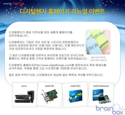 인텔 워크스테이션, 메인보드, SSD 유통사 디지털헨지(대표 정성환, www.digitalhenge.com)가 창립 12주년을 맞이하여 홈페이지를 리뉴얼하였다. 디지털헨지는 12년간 국산 서버 및 스토리지 전문업체로서 당당히 성장해왔으며 서버 업체의 대표주자로 시장을 선도해왔다. 디지털헨지는 서버 및 스토리지 사업 분야 말고도 인텔 SSD, 인텔 NIC, 인텔 메인보드를 국내에 공급하는 대리점으로서 인텔과의 계약을 맺고 사업을 확장해왔다.