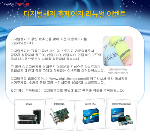 오는 11일까지 진행되는 이번 이벤트는 디지털헨지는 홈페이지에 축하 메시지를 남기면 100명에게 고급 수건 세트를 추첨을 통해 증정한다.