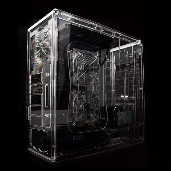 재질의 투명케이스인 'E9'은 일반 ATX를 포함한 가장 큰 보드인 HTPX 규격의 EVGA사의
