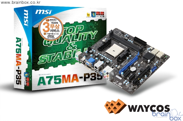 세계 정상급 토탈 IT 솔루션 제조사, MSI의 한국 공식 디스트리뷰터인 ㈜웨이코스(대표:고민종)가 AMD A75 칩셋 기반에 차세대 퓨전 APU ‘라노’ A 시리즈 프로세서를 지원하는 MSI A75MA-P35 메인보드를 출시했다.