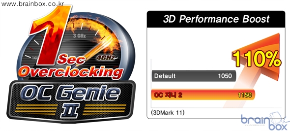 MSI A75MA-P35 메인보드는 더욱 향상된 기능의 MSI OC 지니 2 기술을 제공한다. MSI OC 지니 2 기술은 1초만에 CPU 클럭 및 메모리 클럭을 자동으로 향상시켜 주는 특성을 제공하며, AMD A 시리즈 프로세서 시스템에서 iGPU 클럭을 향상시켜 그래픽 성능을 47% 향상시켜주는 기능을 제공한다. 새로운 OC 지니 2 기술을 통해 MSI A75MA-G55 메인보드 사용자는 AMD 프로세서의 터보코어와 같은 잠재 성능을 빠르고 손쉽게 사용자가 직접 체감할 수 있도록 지원해 준다. AMD 듀얼 그래픽 기술 공식 지원