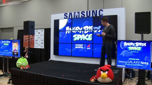 삼성전자는 지난 9일 미국 텍사스주 오스틴에서 열린 SXSW(South By Southwest)에서 로비오사(Rovio Entertainment Ltd.)의 공식 런칭 파트너로서 갤럭시 노트를 통해 최초로 앵그리버드(Angry Birds) 신작인 ‘앵그리버드 스페이스(AngryBird Space)’ 행사를 진행했다고 전했다.