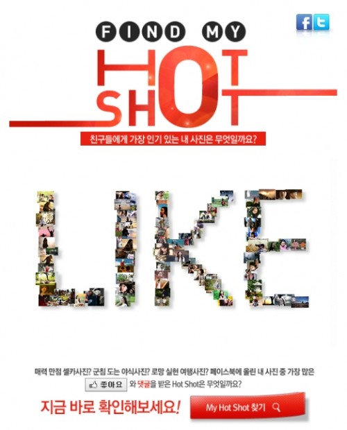 먼저 첫 번째 ‘Find My Hot Shot’은 자신이 페이스북에 올렸던 사진 중에 가장 인기 있었던 사진을 찾아주는 어플리케이션이다. 캐논 페이스북에서 ‘좋아요’ 버튼을 누르고 ‘Find My Hot Shot 찾기’ 버튼을 누르면 자신이 페이스북에 올렸던 사진 중에 가장 많은 ‘좋아요’와 댓글을 받은 사진을 찾아준다.