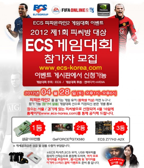 엘리트그룹컴퓨터시스템스코리아(한국지사장 박학선 www.ecs-korea.com, 이하 ECS)가 오는 4월28일 피씨방 대상으로 ‘제 1회 ECS 게임대회’를 실시하며 게임대회에 참가할 선수를 모집한다.