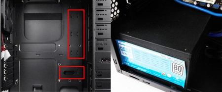 2만원대 케이스에서는 보지 못한 하단 파워 설계되어 있으며 더 깔끔하게 라인을 정리 할 수 있게 선정리홀도 마련되어 있다.