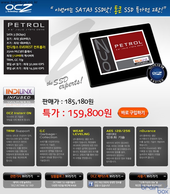 - 3월 13일 자정 PETROL 128GB 마지막 한정 수량진행 OCZ테크놀로지 한국디스트리뷰터인 ㈜아스크텍(대표:신형식)은 최근 출시된 보급형 SSD인 ‘OCTANE(옥테인)S2’와 ‘PETROL(패트롤)’ 시리즈가 연이은 (가칭)통큰 SSD 특가전 실시를 통해 SSD 시장의 고공행진을 펼치고 있어 주목을 받고 있다.