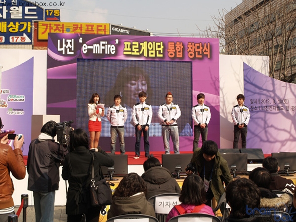 온게임넷 정소림 캐스터의 진행으로 열린 이번 행사는 게임단을 창단한 나진산업과 나진e-mFire 프로 게임단의 후원사인 디앤디컴㈜, 이노베이션티뮤의 업무협약 조인식, 각 후원사 대표들의 축사 및 나진산업 이석진대표의 인사말로 시작 되었다. LOL 프로 게임단으로서는 최초로 치뤄진 이번 창단식은 또, 다른 LOL 프로게임단인 Startale과의 시범경기에 온게임넷의 인기 해설진 정소림 캐스터와 김동준 해설위원이 해설을 맡아 국내 최대의 창단식다운 면모를 보여주었으며, 유명 코스프레팀이자 나진 e-mFire 게임단의 마스코트인 ‘스파이럴 캣츠’팀이 각각 LOL 챔피언인 소나, 카타리나, 애니 코스프레시연을 더해 행사장을 빛냈다. 이에 디앤디컴㈜은 또 다른 스폰서인 이노베이션티뮤와 행사부스로 자리를 함께 하였으며, 선수용 PC에 후원한 ASRock Z68 Pro3 Gen3 디앤디컴 메인보드와 GeForce GTX 560 Ti PANZER HELIOS 그래픽카드를 사용한 시스템 및 인텔 차세대 프로세서를 지원하는 애즈락 메인보드 3종도 함께 전시하여 많은 주목을 받았다. 또한, 창단식 이벤트 경품으로 현 H61 최고의 인기 제품인 ‘ASRock H61M-HVGS 디앤디컴’과 AMD 인기제품인 ‘ASRock 990FX Extreme3 디앤디컴, ASRock A75M-HVS 디앤디컴’을 후원하여 이벤트를 더욱 풍성하게 만들었다.