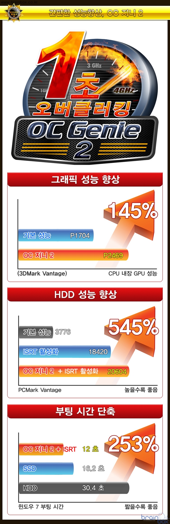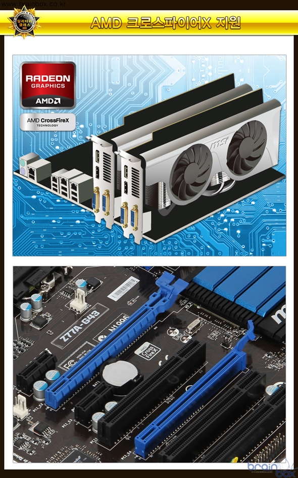 MSI Z77A-G43 Gen3 메인보드는 강력한 3D 게이밍 지원을 위해, 2웨이 크로스파이어X 멀티 그래픽 기술을 지원한다. 2개의 AMD 그래픽카드를 장착하여 3D 가속성능을 더욱 높일 수 있기 때문에, 최신 DX11 API를 지원하는 “배틀필드 3”와 같은 고사양 3D 게임도 부드럽고 빠르게 즐길 수 있다. 간편한 성능향상, OC 지니 2