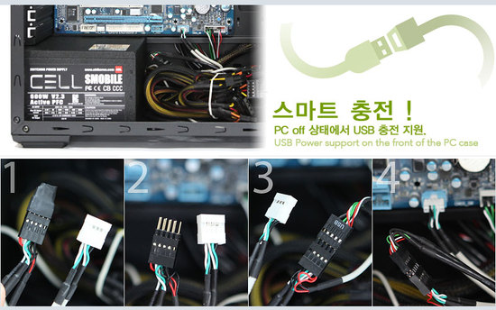 특히 USB를 접목시켜 PC 케이스 전면의 USB포트에 DC 5V 전원을 직접 공급한다. 시스템 OFF 상태에서 5VSB를 사용해 USB 기기를 사용하거나 스마트 폰 등을 충전할 수 있으며, USB허브를 사용해 동시에 여러 가지 USB기기를 안정적으로 사용할 수 있다.