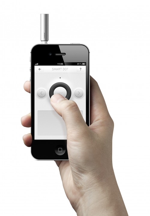 ‘스마트 닷’은 아이폰과 프리젠테이션 포인터를 결합한 신개념 액세서리로 아이폰의 3.5파이 이어폰 단자에 꽂아 별도 건전지 없이 사용할 수 있으며, ‘스마트 닷’ 애플리케이션과 연동하면 발표화면 안에 마우스와 같은 가상 포인터가 생성돼 아이폰 화면 터치를 통해 레이저포인터의 온,오프 기능 뿐 아니라 간단한 마우스 기능까지 컨트롤이 가능하다.