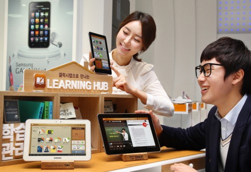 삼성전자가 지난 달 공개한 교육 서비스 플랫폼인 러닝허브는 현재 갤럭시탭 10.1, 갤럭시탭 8.9 LTE, 갤럭시탭 7.7 LTE 등 태블릿을 통해 8,500여개의 유·무료 컨텐츠를 제공하며, 체험존에서 러닝허브의 다양한 기능을 직접 경험해볼 수 있다.