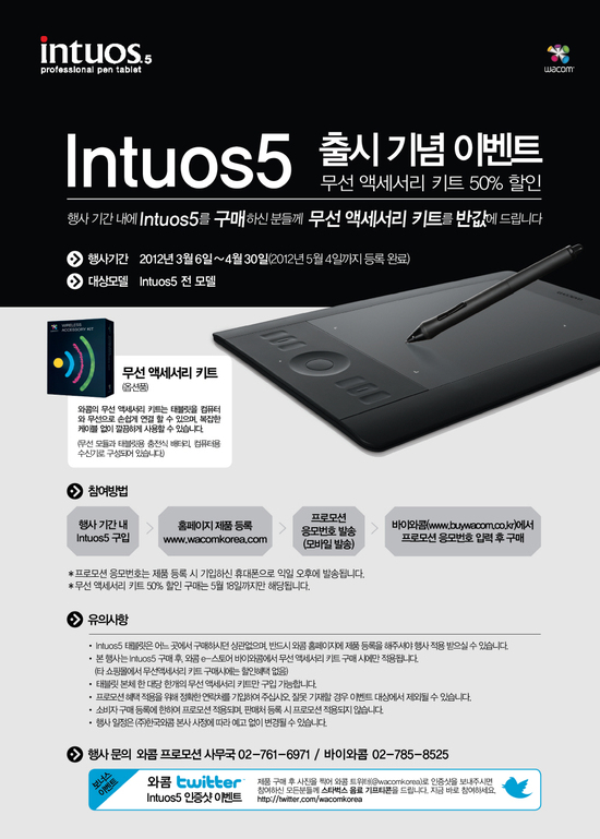 한국와콤이 오는 4월 30일까지 신제품 Intuos5(인튜어스5)
