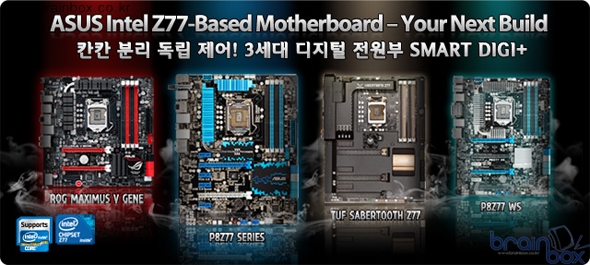 HW 방식 멀티 컨트롤러 칩셋에 의한 칸칸 분리독립 제어 디지털 전원부 적용 이번 데스크탑 라인업인 P8Z77-V 시리즈는 물론 익스트림 게이머를 위한 ROG 시리즈 , 군용부품 채용으로 강력한 내구성을 보여주는 TUF 시리즈 , 강력한 안정성과 극대화된 성능을 보여주는 WS 시리즈 등 다양한 신제품들이 쏟아지면서 소비자들의 눈과 귀를 즐겁게 해줄 예정이다.