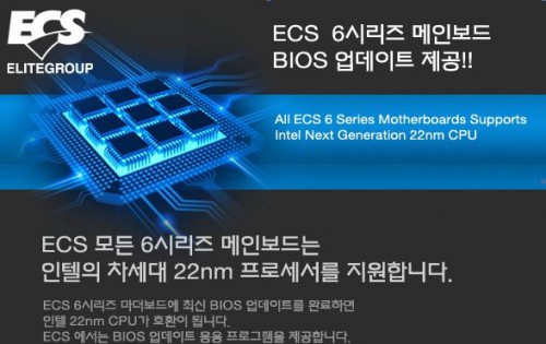 ECS (대표 박학선 www.ecs-korea.com)는 ECS6시리즈 메인보드에 22nm 프로세서를 지원하게 해주는 바이오스 공급을 시작했다.