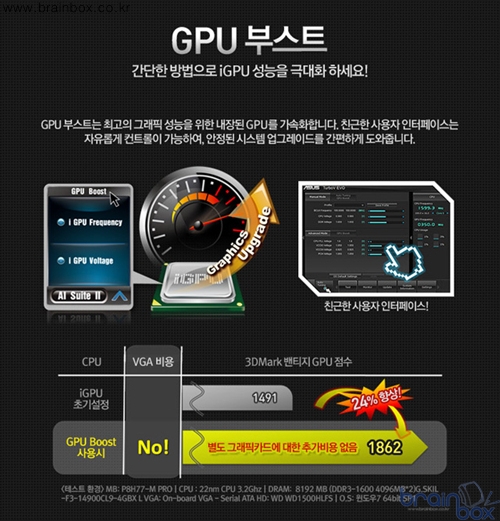 신제품인 ASUS P8H61-I LX 메인보드를 출시하였다. 인텔 2세대 코어 프로세서를 지원하는 P8H61-I LX는 CPU 내장 그래픽(iGPU)만으로도 멀티미디어 HTPC(홈씨어터PC)나 세컨컴퓨터를 구성하려는 유저들에게 추천할 수 있다. 이 메인보드에는 내장 그래픽 성능을 강화시켜 주는 GPU 부스트 기능이 탑재되어 있어 따로 그래픽카드를 구매하지 않아도 뛰어난 성능을 보여준다. ![]() ![]() ![]() P8H61-I LX는 원클릭으로 간편하게 내장 iGPU의 성능을 30%가량 강화시켜 준다. ITX 타입의 메인보드를 사용할 경우 별도의 LP형 그래픽카드를 구매해서 사용하는 경우도 있지만, CPU의 내장그래픽만으로 시스템을 구성하는 경우가 많다. P8H61-I LX는 향상된 내장그래픽 성능을 통해 가볍게 시스템을 구성하려는 유저들에게 큰 호응을 얻을 것으로 보인다. ![]() ![]() P8H61-I LX에도 역시 아수스 메인보드들의 뛰어난 하드웨어 설계가 적용되었다. 하드웨어 방식의 안티서지 칩셋 탑재, 실시간 에너지 절감 프로세서 등 ASUS만의 고유한 기술들로 메인보드를 가득 채우고 있다. 특히 하드웨어 방식의 안티 서지 칩셋은 파워 서플라이에서 인가되는 시점 과 각 부품들에 공급되는 시점에서의 3.3V , 5V , 12V 전압에 대해서 갑작스럽게 발생하는 서지 전압이 부품들에 손상을 주지 않도록 빠르게 보호해 주는 기능이다. ![]() P8H61-I LX 메인보드의 다양한 기능을 보다 쉽게 활용할 수 있도록 Ai Suite2 유틸리티를 제공하여 하드웨어 모니터링 , 하드웨어 설정 , EPU 칩셋을 통한 전원절감 기능 등도 손쉽게 관리 할 수 있다. ![]() 자세한 제품 사양은 하단을 참조하면 되며 기타 제품 관련 문의는 에스티컴퓨터(www.stcom.co.kr) 홈페이지 고객센터 또는 영업부(02-712-7828)로 문의하면 된다. |