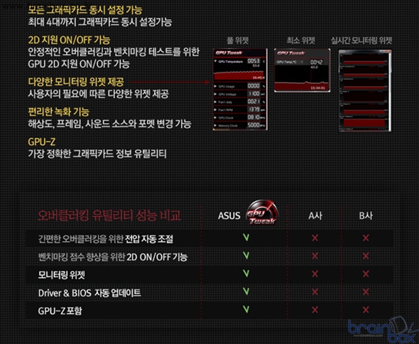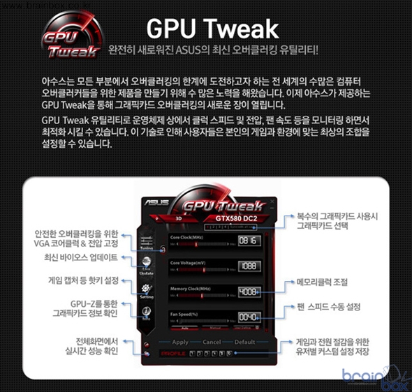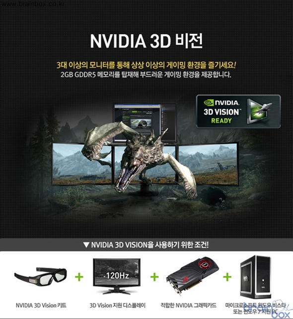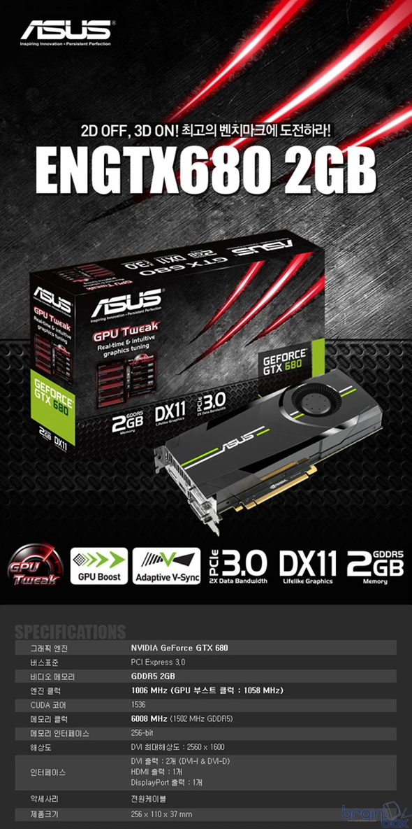 첫 그래픽카드인 ASUS ENGTX680 2GB를 출시한다. 이 그래픽카드는 세계에서 가장 빠른 단일 그래픽카드를 모토로 출시되었으며, 아수스 고유의 그래픽카드 오버클러킹 유틸리티인 GPU Tweak을 통해 이전에는 경험해보지 못한 초고속의 그래픽카드가 탄생했다. 특히 GPU Tweak만의 기능 중 하나인 2D ON/OFF 기능을 통해 그래픽카드의 3D 성능을 한 단계 더 향상시킬 수 있다. ![]() 최신 아수스 그래픽카드 모니터링 & 오버클러킹 유틸리티인 GPU Tweak은 타사가 따라 올 수 없는 다양한 기술을 갖추고 있어 그래픽카드 유틸리티의 표준으로 자리잡고 있다. ![]() 이 중에서도 눈에 띄는 기능은 단연 2D ON/OFF 기능을 통해 3D 성능 및 그래픽 벤치마크 점수를 대폭 상향 할 수 있다는 점이다. 이 기능은 갈수록 하이퀄리티의 3D 게임이 많아지고 있는 추세를 반영한 아수스만의 특징으로써 3D 게임을 보다 더 부드럽고 안정적으로 지원할 수 있게 해준다. 또한 벤치마크를 통해 내 그래픽카드의 3D 성능을 확실하게 알기 위해서도 2D ON/OFF 기능은 유용하게 사용할 수 있다. 이 외에도 다양한 위젯을 제공해 사용자의 편의에 따라 내 그래픽카드의 상태를 편리하게 알아 볼 수 있으며 GPU 엔진 클럭 조정에 따른 자동 전압조절, 강력한 게임 캡쳐 기능 등 다양한 유저 편의 요소를 갖추고 있다. 이 같이 우수한 유틸리티 지원은 아수스 그래픽카드를 선택해야 하는 이유 중 하나이다. ![]() ASUS ENGTX680 2GB는 세계 최초의 캐플러 아키텍쳐로 설계된 엔비디아 GTX680 칩셋을 장착해 지난 세대에 비해 저전력으로 동작하면서도 더 향상된 3D 처리 및 게이밍 능력을 갖추고 있다. 또한 PCI Express 3.0 인터페이스를 지원해 기존에 비해 두 배로 늘어난 32GB/s의 대역폭을 제공한다. 이를 통해 엔비디아 3D비전 기술을 활용해 3대 이상의 모니터를 사용할 때나 3D 게임을 즐길 때 더욱 더 부드러운 동작 환경을 제공한다. ![]() ![]() 엔비디아 GTX600 시리즈에 적용된 다양한 신기술도 ASUS ENGTX680 2GB을 통해 접해 볼 수 있다. 엔비디아 GPU 부스트 기능은 GPU의 사용전력, 동작상태를 모니터링하다가 GPU의 상태에 따라 클럭을 실시간으로 다이나믹하게 조절해 그래픽카드의 성능을 더 향상시켜주는 기능이다. 또한 어답티브 V-싱크 기술은 게임진행 시 최대 프레임을 60으로 고정시켜 게임화면이 끊기거나, 현저하게 느려지는 현상을 미연에 방지하는 기술이다. ![]() ASUS GTX680 2GB을 통해 더욱 더 풍부한 영상의 세계로 빠져들 수 있다. 이전 세대의 그래픽카드는 2대 이상을 사용해야만 3대 3D 모니터를 사용할 수 있었지만, ASUS GTX680 2GB은 단일 그래픽카드에서도 최대 3대의 모니터를 사용 할 수 있다. 또한 진일보한 PhysX 성능과 늘어난 CUDA 프로세서를 통해 보다 리얼한 게이밍 경험을 선사할 것이다. 기타 제품 관련 문의는 에스티컴퓨터(www.stcom.co.kr) 홈페이지 고객센터 또는 영업부(02-712-7828)로 문의하면 된다. ![]() |