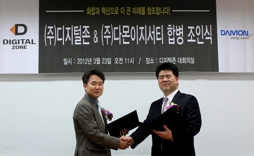 디지털존(대표 심상원 www.digitalzone.co.kr)과 인터넷증명발급시스템 시장 점유율 1위 기업인 다몬이지서티(대표 전정우, www.damoneasycerti.co.kr)는 지난 22일 주주총회에서 합병승인을 받고, 합병 조인식을 통해 사실상 기업합병의 마무리 단계에 접어들었다고 금일 밝혔다.