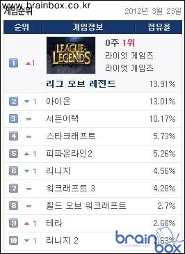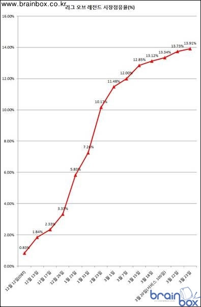 시작 후 4달 만에 기록 달성 - PC방 중심의 프로모션 전개로 게임 성장은 물론 업계 훈풍까지 이끌어ㅡ. 라이엇 게임즈(아시아 대표 오진호, www.riotgames.com)가 개발 및 배급하는 세계적인 온라인 게임 리그 오브 레전드가 PC방 사용시간 점유율13.91%(게임트릭스, www.gametrics.com 근거)로 1위를 기록했다고 24일 밝혔다. 이는 지난해 12월 공개서비스를 시작한 지 넉 달 만에 달성된 기록이란 점에서 더 주목된다.. ![]() [표] PC방 게임사용량 순위 <출처: 게임트릭스> 순위 결과에 대해 라이엇 게임즈는 탄탄한 게임 콘텐츠를 바탕으로 한 ‘고객 중심의 서비스’가 PC방 중심의 프로모션 전략 등과 시너지를 일으켰기 때문이라 분석하고 있다. 실제로 리그 오브 레전드 프리미엄 PC방 가맹점에서 게임을 플레이하는 유저들은 게임의 모든 챔피언을 제한 없이 플레이 할 수 있다는 점과, 개인에게 제공되는 추가 보너스 IP 20%가 큰 매력으로 작용한 것으로 보인다. 꾸준히 출시되고 있는 신규 챔피언 또한 사용자들이 지속적으로 PC방을 방문해 게임 플레이를 즐기는 또 다른 이유가 되고 있단 평가다. 라이엇 게임즈의 오진호 대표는 “무엇보다 사용자들의 큰 사랑과 관심에 감사한다”며 “자사는 사용자와 PC방 업계 모두가 만족할 수 있는 서비스를 제공하고자 많은 노력을 기울여 왔으며, 게임의 성장이 즐거운 게임 놀이문화 형성에 기여하고 있는 것 같아 더 기쁘다”고 덧붙였다. 라이엇 게임즈는 지난 해 12월 12일부터 리그 오브 레전드 오픈 베타 서비스를 시작했으며, 현재 온라인 정보 사이트 ‘게임노트(www.gamenote.com)의 온라인 게임 순위에서도 1위를 기록하고 있다. ![]() |