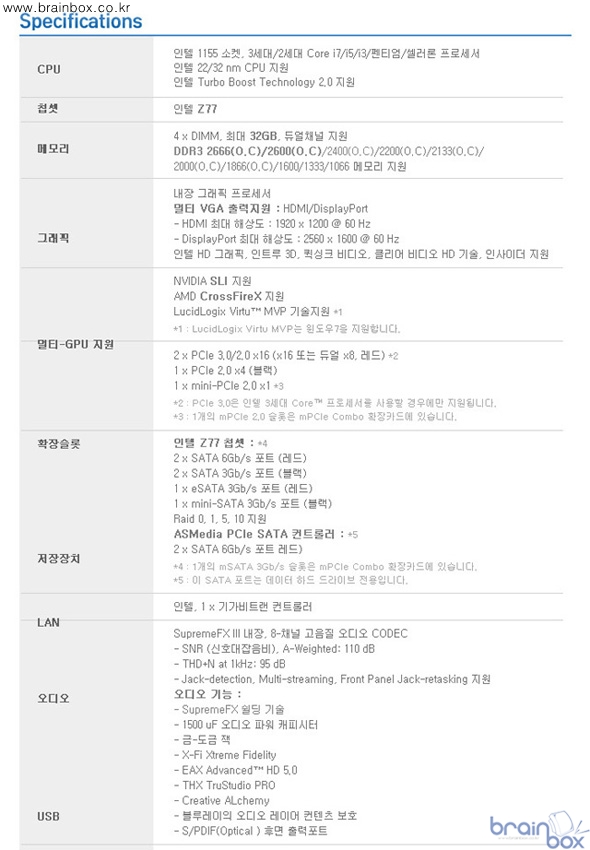 또한 Z77 칩셋의 특징인 PCIe 3.0 규격, LucidLogix Virtu MVP도 지원해 차세대 그래픽카드의 성능을 120% 이끌어 낼 수 있다.