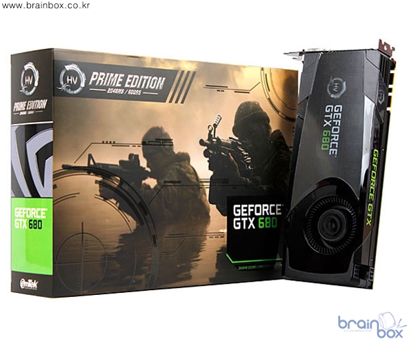 28nm 공정 기술과 혁신적인 Kepler 아키텍처를 기반으로 제작되는 NVIDIA 싱글 GPU 최상위 기종인 GeForce GTX 680은 35억 4천만개의 트랜지스터를 집적하고 있으며 1,536개의 CUDA 프로세서와 2GB의 넉넉한 용량을 가진 초고속 GDDR5 메모리를 채택하고 있다. 이를 통해 <HV GeForce GTX 680 Prime Edition>은 기존의 어떠한 그래픽카드보다 더욱 부드럽고 생생한 그래픽 효과를 구현해 줌으로써 진정한 게임 성능의 변화를 가져다 준다. 더 빠르게 - NVIDIA GPU Boost <HV GeForce GTX 680 Prime Edition>은 NVIDIA의 새로운 기술인 GPU 부스트 기술을 가지고 있다. GPU 부스트 기술은 GPU의 부하 정도에 따라 최대 소비 전력 범위 내에서 코어 및 메모리의 동작 클럭과 동작 전압을 자동으로 조정해 최대의 성능을 이끌어낸다. 특히 GPU 부스트 기술은 추가적인 오버클럭을 시도하더라도 동작하므로 더 높은 성능을 이끌어 낼 수도 있다. 더 부드럽게 - NVIDIA Adaptive V-Sync <HV GeForce GTX 680 Prime Edition>은 또 하나의 새로운 기술인 Adaptive Vertical Sync(적응형 수직 동기화)기술도 포함하고 있다. 이 기술은 너무 높거나 낮은 프레임률에서 발생하는 화면 왜곡 현상(Tearing, Stuttering)을 줄여주며 상황에 맞게 자동으로 프레임률을 조정하여 부드럽고 원활한 최적의 게임 플레이 환경을 만들어 준다. 더 풍부하게 - NVIDIA 3D Vision Surround <HV GeForce GTX 680 Prime Edition>은 하나의 그래픽카드로 최대 4대의 모니터 출력을 할 수 있다. 이전 세대의 지포스 그래픽카드에서 3대 이상의 모니터를 구성하기 위해서는 SLI와 같은 다중 GPU 기술이 필요했으나 GeForce GTX 680부터는 싱글 GPU만으로 다중 모니터 구성이 가능하기 때문에 사용 편의성과 비용 절감의 장점이 있다. 이 기술은 3+1 형태의 모니터 구성이 가능하며 모니터 3대를 묶어 NVIDIA의 3D 스테레오스코픽 기술인 NVIDIA 3D Vision을 적용한 광활한 3D Vision 서라운드 환경을 구축하고 나머지 1대는 인터넷이나 문서 작업 등의 보조 모니터 형태로 구성이 가능하다.