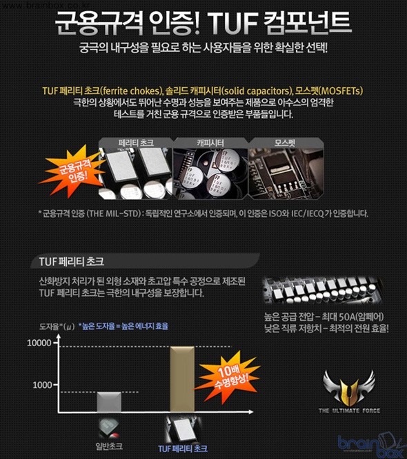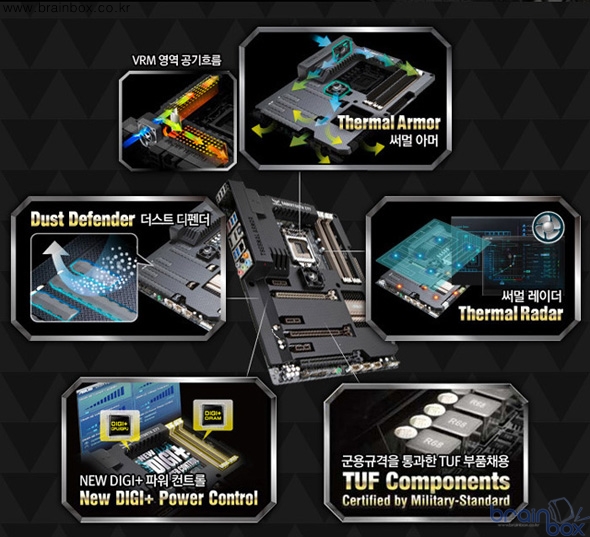 이러한 TUF 시리즈만의 내구성 설계 부분 이외에도 차세대 전원 설계 기술 등도 신 설계도 대폭 적용되어 성능과 내구성의 완벽한 밸런스를 보여준다.