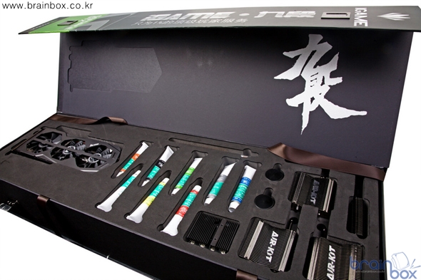 아직 국내에서 판매한 적은 없지만 3슬롯의 거대한 쿨러와 높은 팩토리 오버율, 그리고 추가 장착이 가능한 에어킷 등 색다른