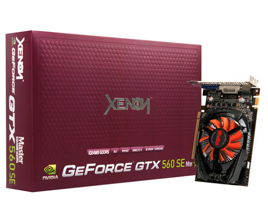 XENON과 HV 브랜드로 각각 출시된 GeForce GTX 560 SE 2종은 모두 레퍼런스 디자인을 재 해석한 새로운 설계로 PC케이스와의 호환성을 고려해 짧게 만들어졌다. 두 제품 모두 736MHz의 GPU 클럭과 3,828MHz의 메모리 클럭으로 작동하고 1GB 용량의 GDDR5 프레임 버퍼 메모리를 탑재했다.