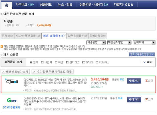 1. 다나와를 통해 CJmall 링크로 들어가기