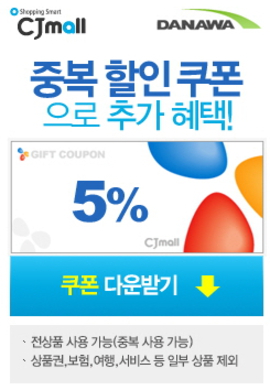 기존 CJmall 할인 혜택 외에 다나와를 통해 들어오는 고객에게 추가로 5% 쿠폰을 발급하여 기존 혜택에 추가로 할인되기 때문에, 더욱 저렴하게 제품을 구입할 수 있다.