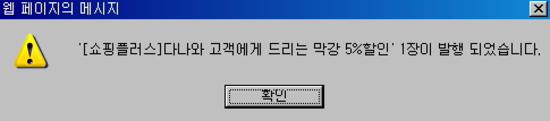 쿠폰 팝업이 뜨면 하단의 쇼핑지원금 쿠폰받기를 클릭하여 아래와 같은 팝업창을 통해 쿠폰을 다운받으면 된다.