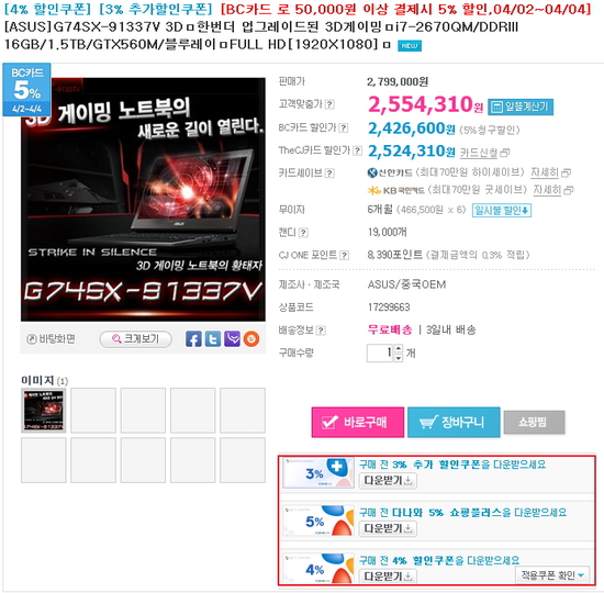 일시불을 통해 추가로 할인 받을 수 있고 결제 카드에 따라 추가 5% 청구 할인과 무이자할부도 지원, 꼼꼼히 따져보고 구입하면 알뜰 쇼핑이 가능하다.