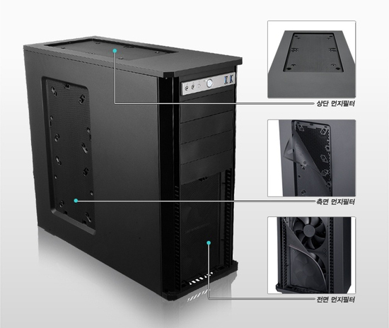 또는 140mm 팬을 추가로 장착할 수 있다. 앞면 I/O 패널에는 전원, 리셋 버튼 외에